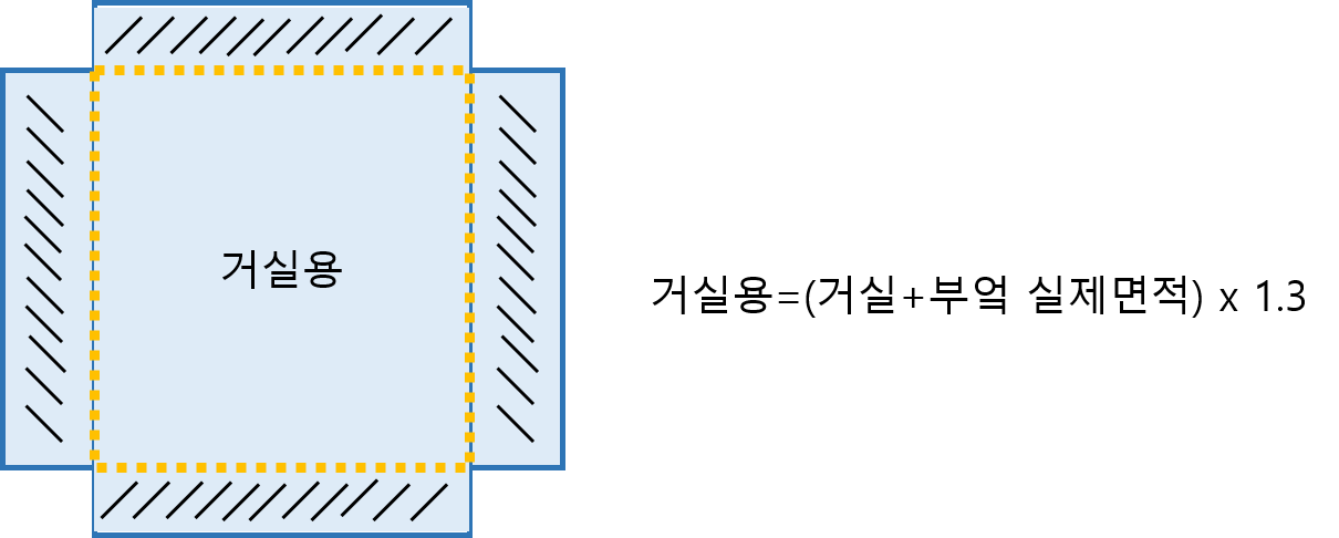 이 경우 실면적을 측정하셔서 계산하시기 바랍니다.