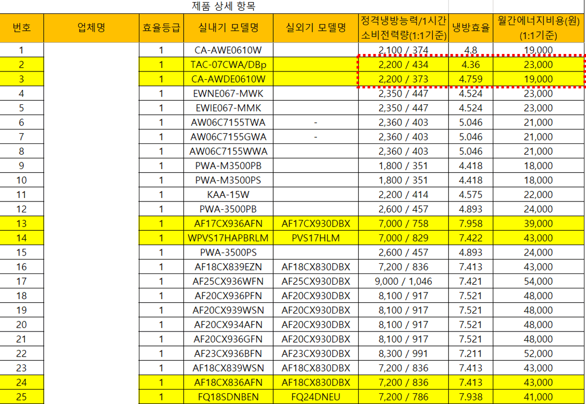 위의 말처럼 냉방효율을 보면 더 좋은 제품을 찾을 수 있는지 확인해보겠습니다.